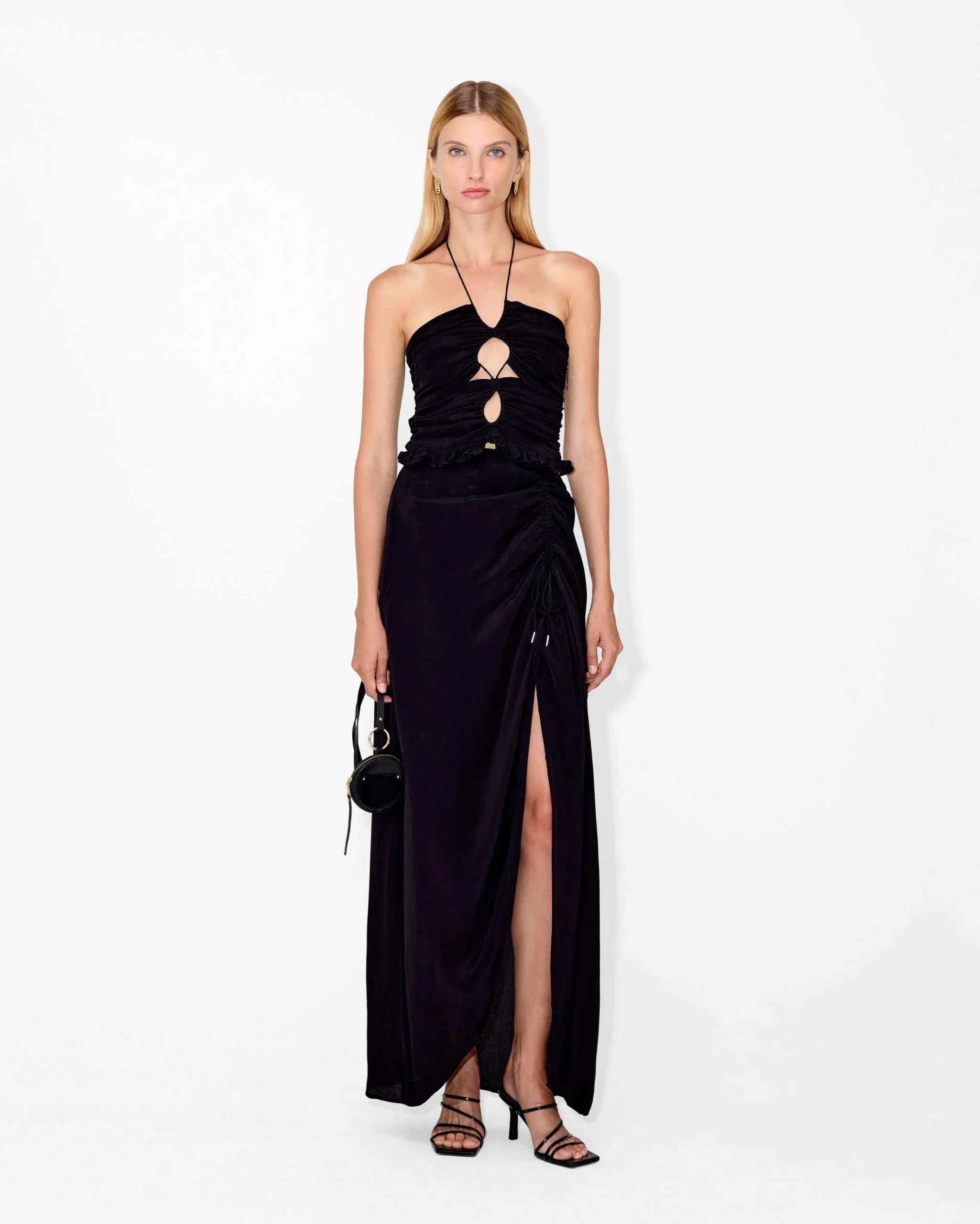 Drawing inspiration from Balinese saroong shape, the Alida Skirt highlights the waist and its movements. It sits just above the ankle with a mid-cut split that flatters the body’s natural curves.
