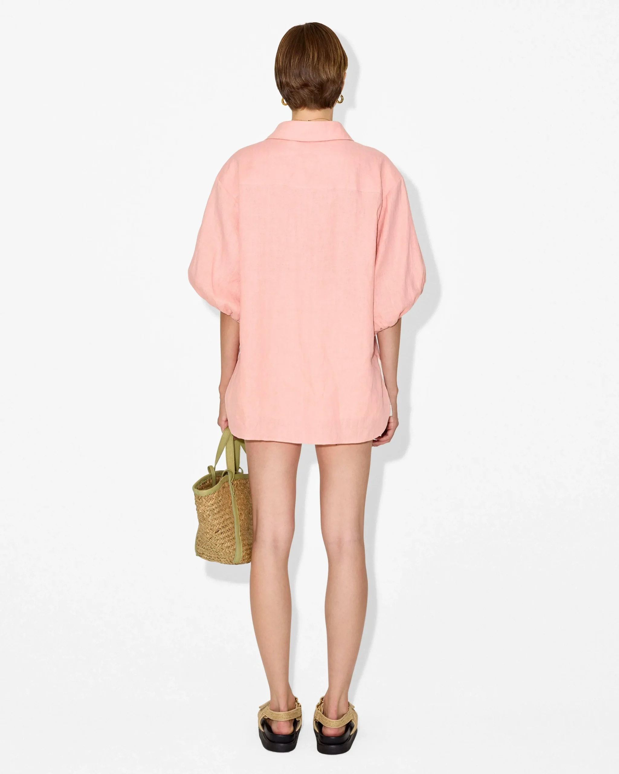 Elasticized balloon sleeves for a playful touch.