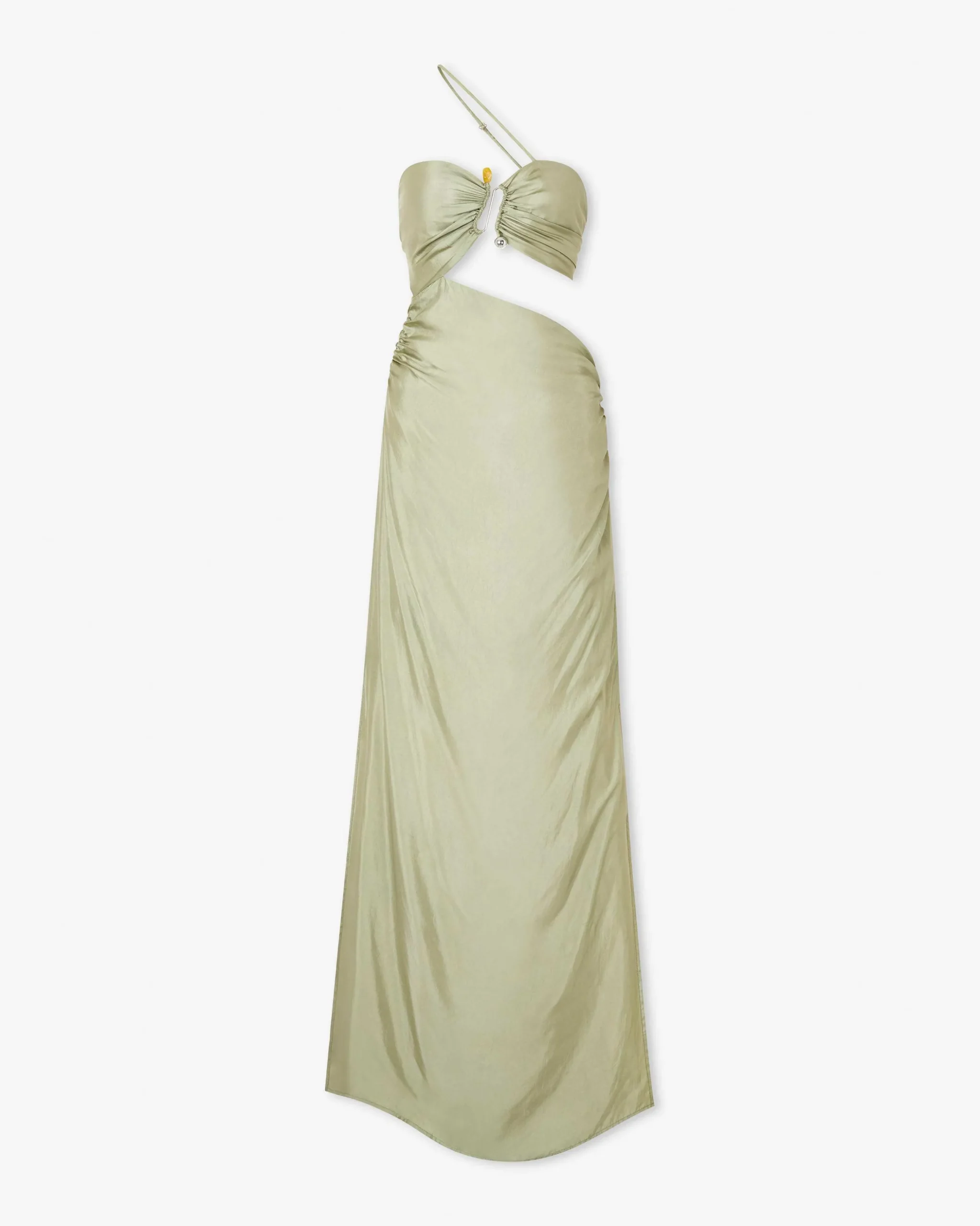 The Justine Maxi Dress has a figure-skimming cut, and features front and side bold cutouts with an open back. It flatters the bust, waist, and midriff, bringing sensuality with an edge. (The mini dress version is available here.)